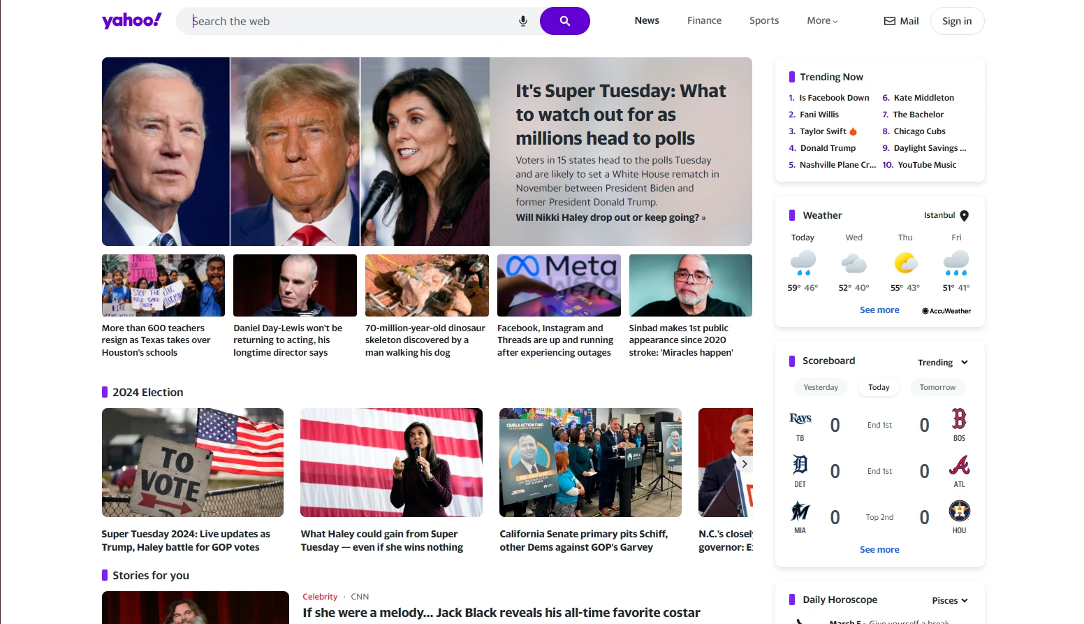 Yahoo popülerliğini kaybetmiş olsa da yine de karşımıza çıkan bir arama motoru. Yahoo'nun ana sayfasına girdiğimizde gözümüze ilk çarpan şey haberler oluyor. Yahoo haber odaklı bir ana sayfa tasarlayarak arama motorlarına farklı bir estetik katmış. Finans ve spor seçenekerini de hemen yukarıda görebiliyoruz. Yahoo gündem odaklı ve güncel bir arama motoru yaratmayı hedeflemiş olduğunu hissedebiliyoruz.